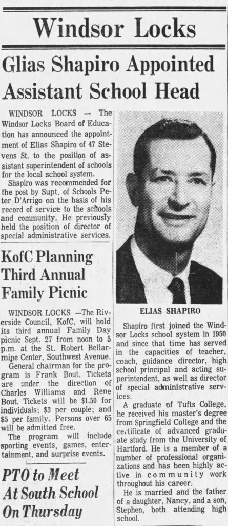 Elias “Spud” Shapiro died on March 24, 2000, at age 75–one of the most widely respected and beloved citizens of Windsor Locks.