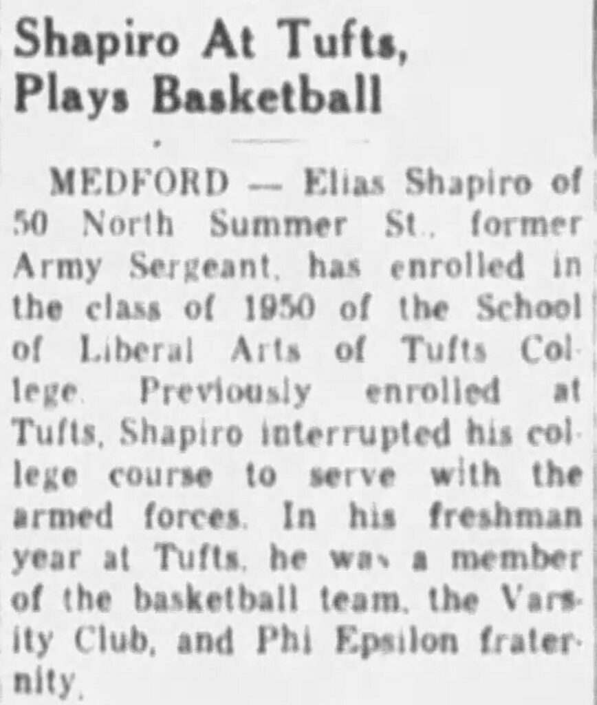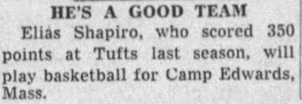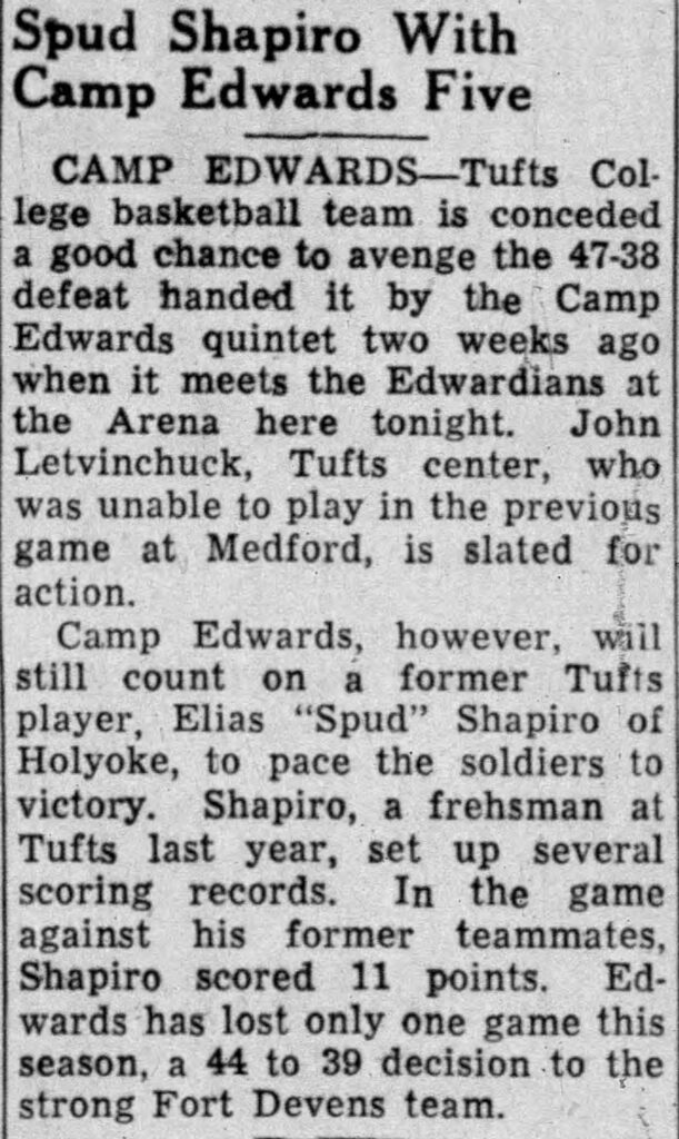 After serving three years in the Army, Spud returned to Tufts to continue his outstanding basketball career.