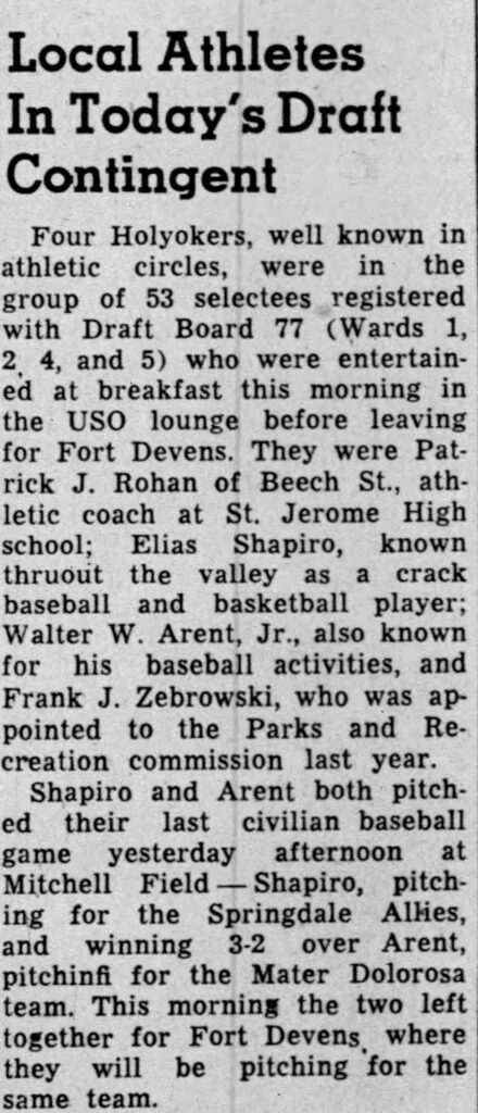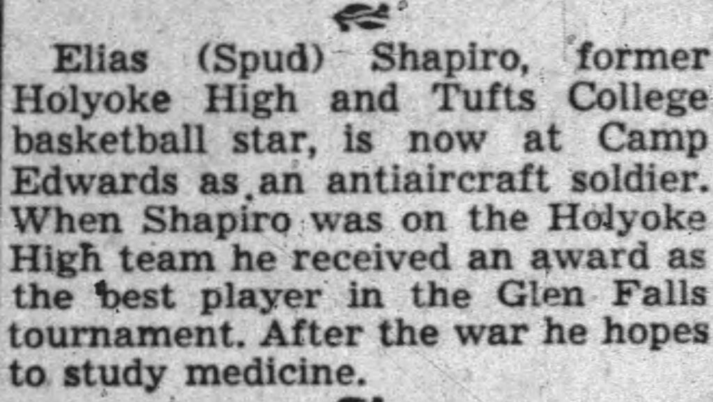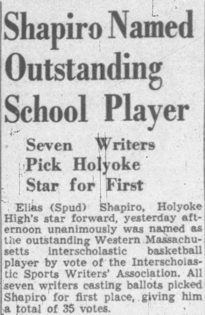 After compiling numerous scoring records, all league, and MVP honors, Spud was named the Most Outstanding basketball player in Western Massachusetts in 1942 and to the All-Western Massachusetts team.