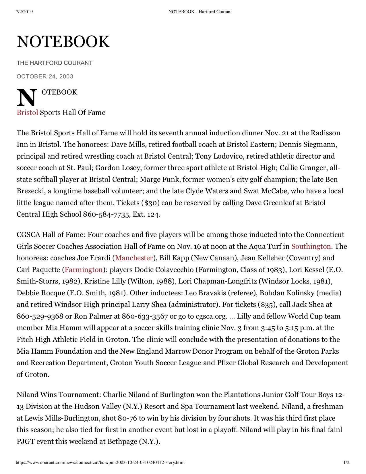 NOTEBOOK – Hartford Courant